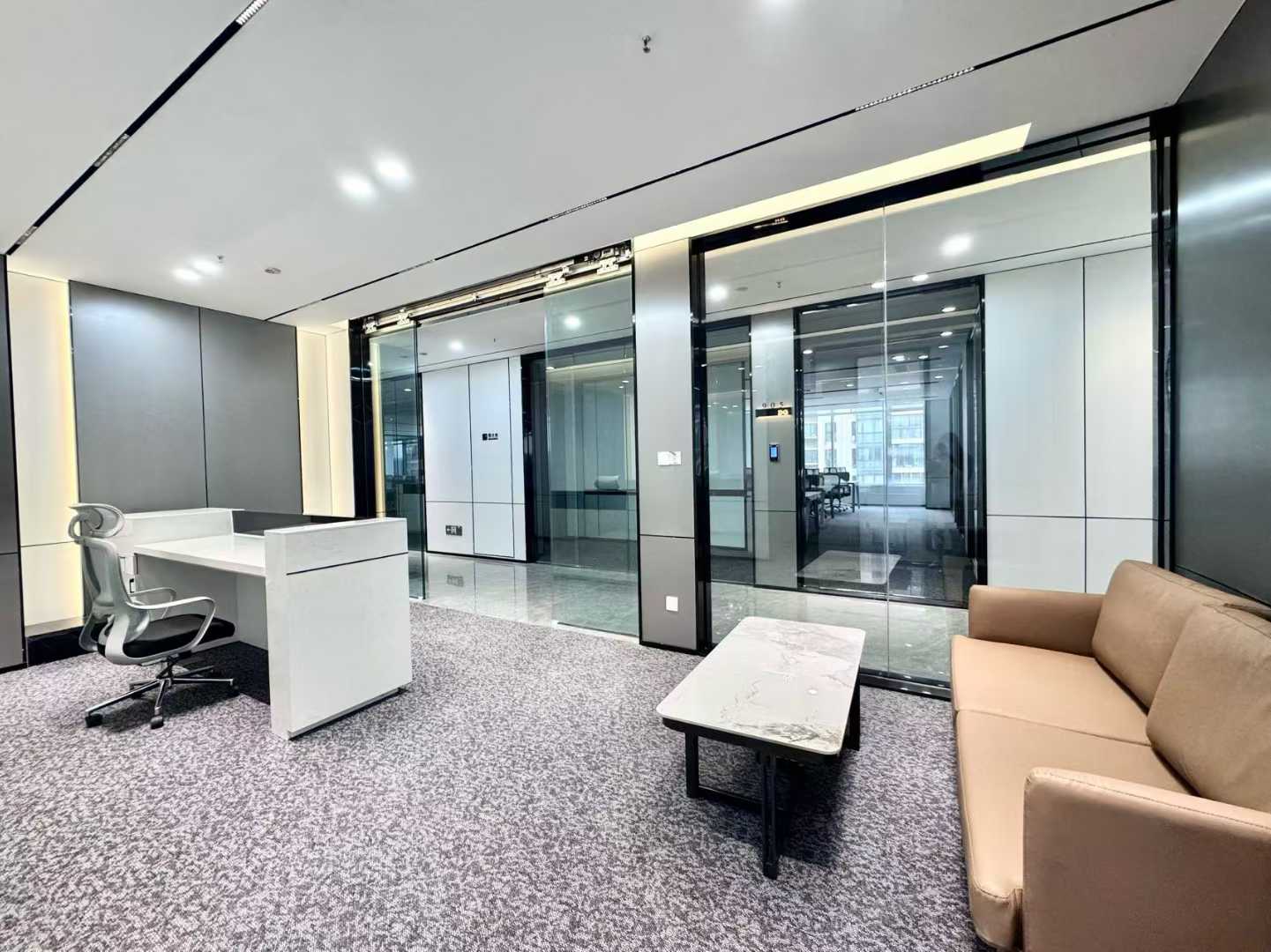 天府三街甲级楼盘 417平方 7隔间36工位 电梯口精选房源 艺术装修 报价含物业 希顿国际广场办公室出租2.87元/m²/天417.37m²高新区距离地铁1号线天府三街296米电梯口特价甲级¥35934/月 -