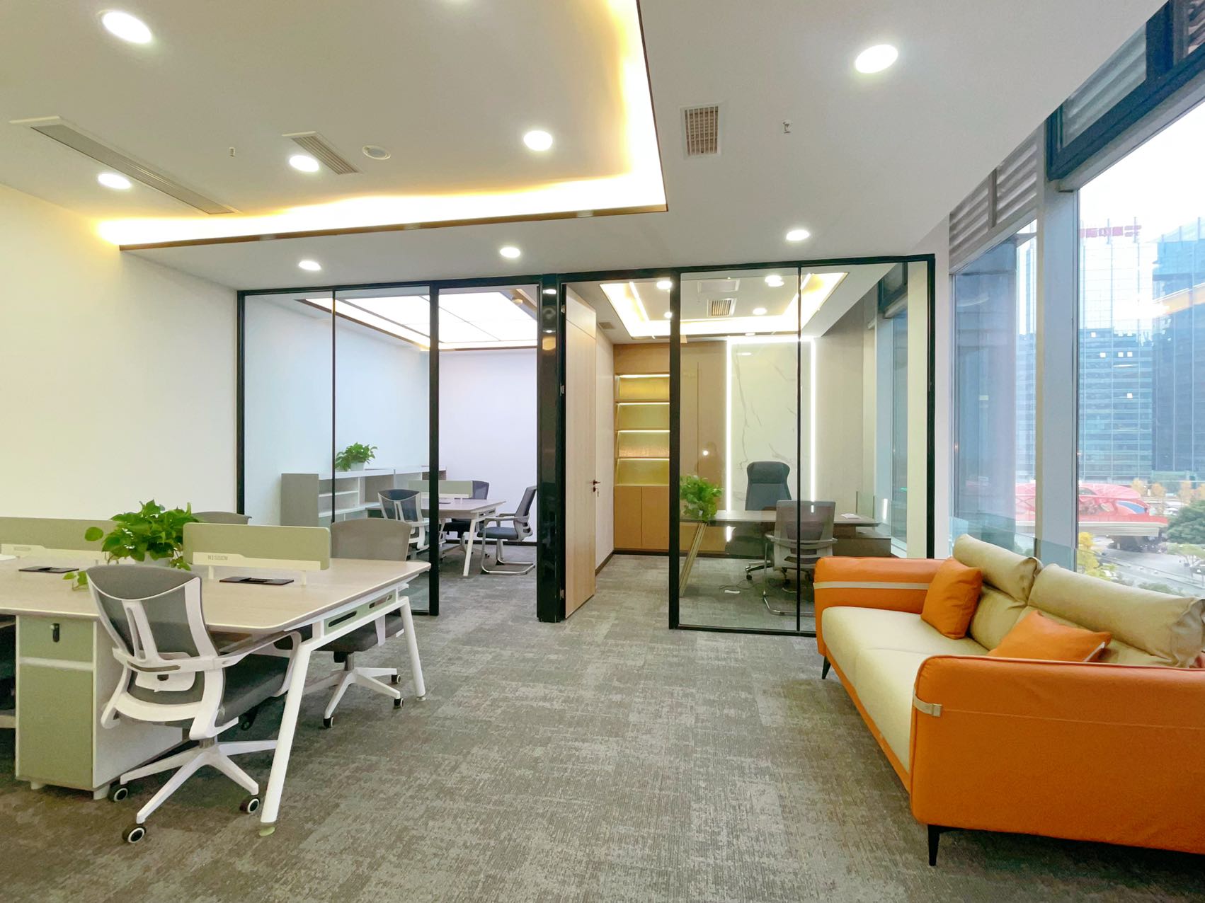 金融城低区双面采光户型 3隔间1会议室18工位 报价含物业费 近地铁 中航国际广场写字楼出租